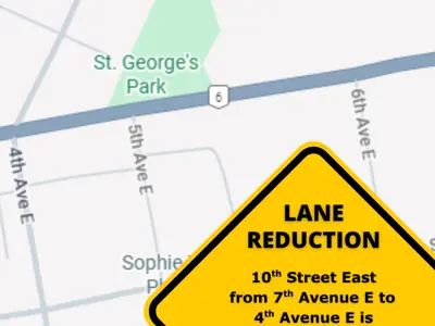 Owen Sound motorists should be aware of alternating lane closures on 10th Street East, happening between 2nd Avenue East and 3rd Avenue East, on Friday, November 14. These lane closures are required to accommodate necessary work being done by a privately commissioned contractor and are expected to occur between 10 a.m. to 2 p.m. to avoid peak traffic times.